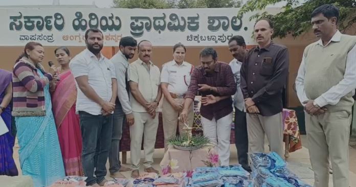 ಚಿಕ್ಕಬಳ್ಳಾಪುರ : ನಗರದ ಒಂದನೇ ವಾರ್ಡ್ನ ಬಿಜೆಪಿ ಮುಖಂಡರಾದ ಶಶಿಶೇಖರ್ ರವರು ಸರ್ಕಾರಿ ಶಾಲಾ ಮಕ್ಕಳಿಗೆ ಕ್ರೀಡಾ ಸಮವಸ್ತ್ರ(ಟ್ರ್ಯಾಕ್ ಸೂಟ್)ವಿತರಣೆಕಾರ್ಯಕ್ರಮವನ್ನು ಮುಂದುವರೆಸಿದ್ದು ಶನಿವಾರ ನಗರದ ವಾಪಸಂದ್ರದಲ್ಲಿರುವ ಸರ್ಕಾರಿ ಹಿರಿಯ ಪ್ರಾಥಮಿಕ ಶಾಲೆಯ ಮಕ್ಕಳಿಗೆ ಟ್ರ್ಯಾಕ್ ಸೂಟ್ ವಿತರಿಸಿದರು.