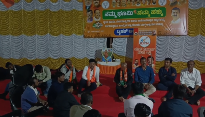 ವಕ್ಫ್ ಬೋರ್ಡ್ ಮೂಲಕ ರೈತರ ಹಾಗು ಮಠಮಾನ್ಯಗಳ ಜಮೀನುಗಳನ್ನು ಕಬಳಿಸುತ್ತಿರುವ ಕಾಂಗ್ರೇಸ್ ಸರ್ಕಾರದ ವಿರುದ್ಧ ಗದಗದಲ್ಲಿ ನಮ್ಮ ಹಕ್ಕು-ನಮ್ಮ ಭೂಮಿಗಾಗಿ ಅಹೋರಾತ್ರಿ ಧರಣಿಯನ್ನ ಹಮ್ಮಿಕೊಳ್ಳಲಾಗಿತ್ತು.